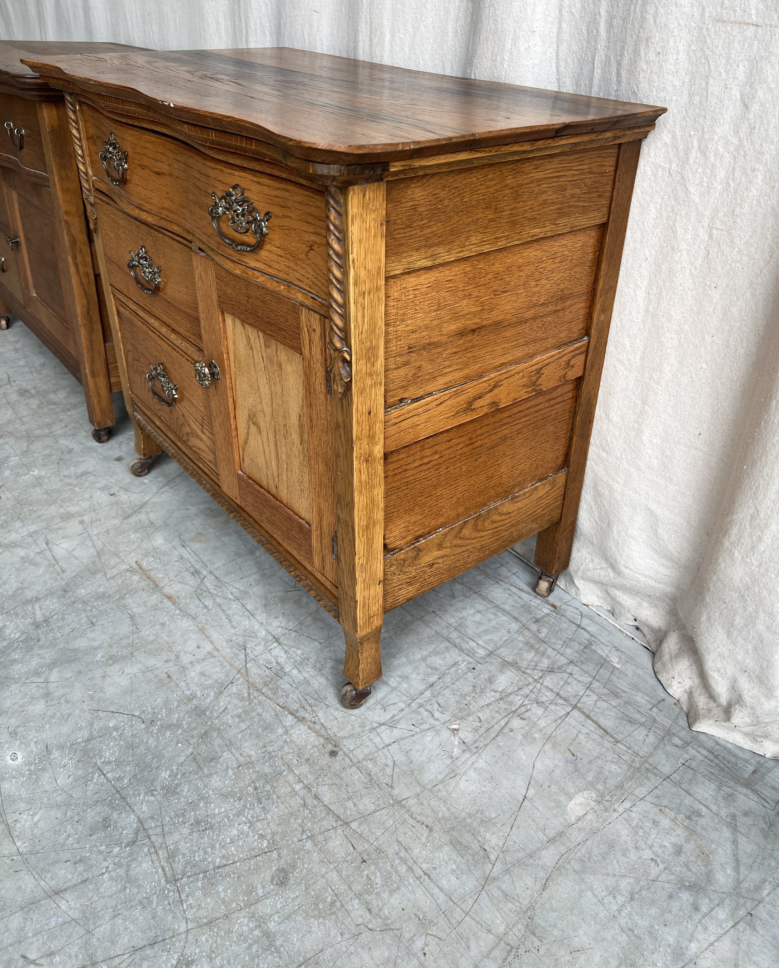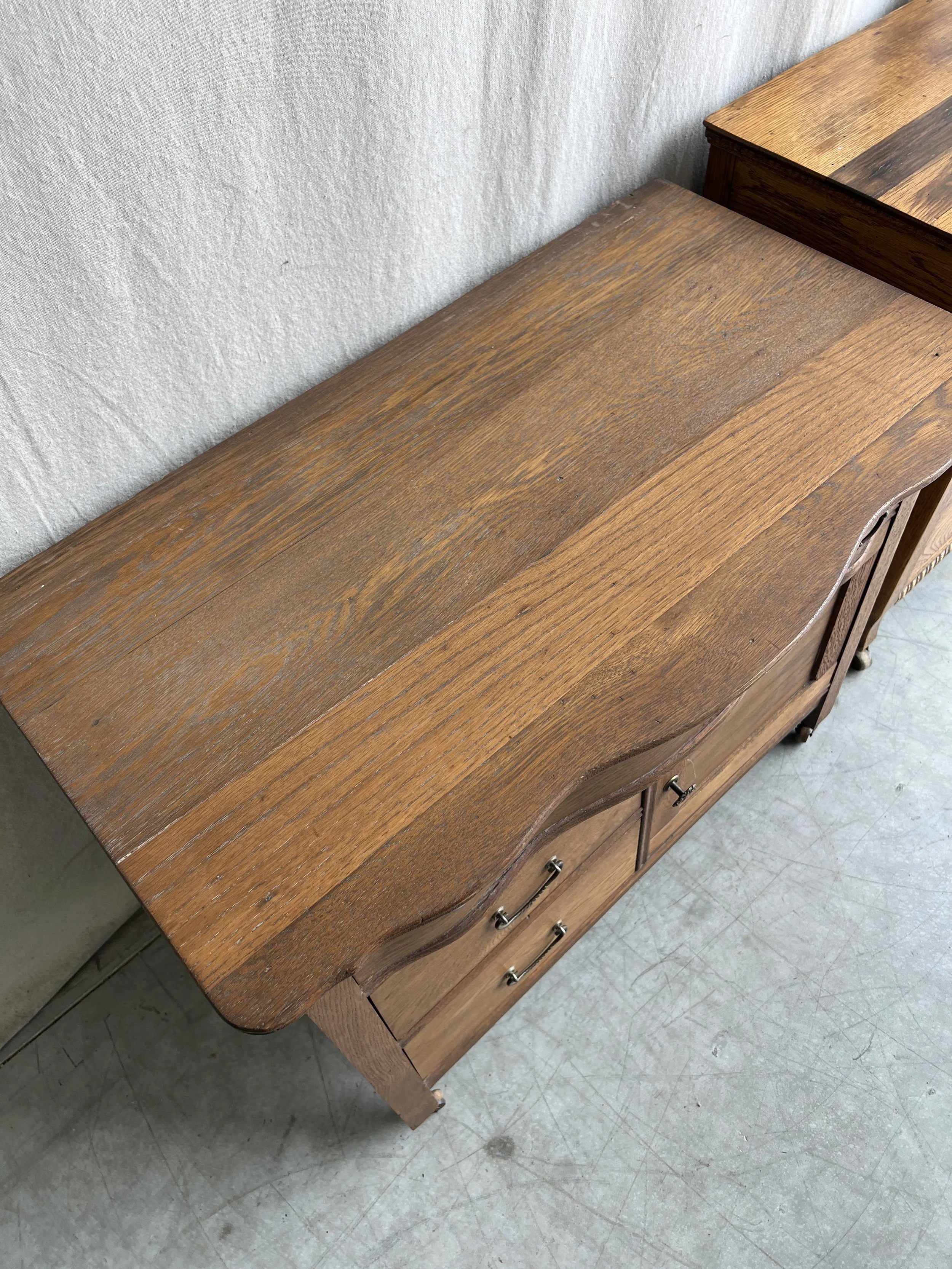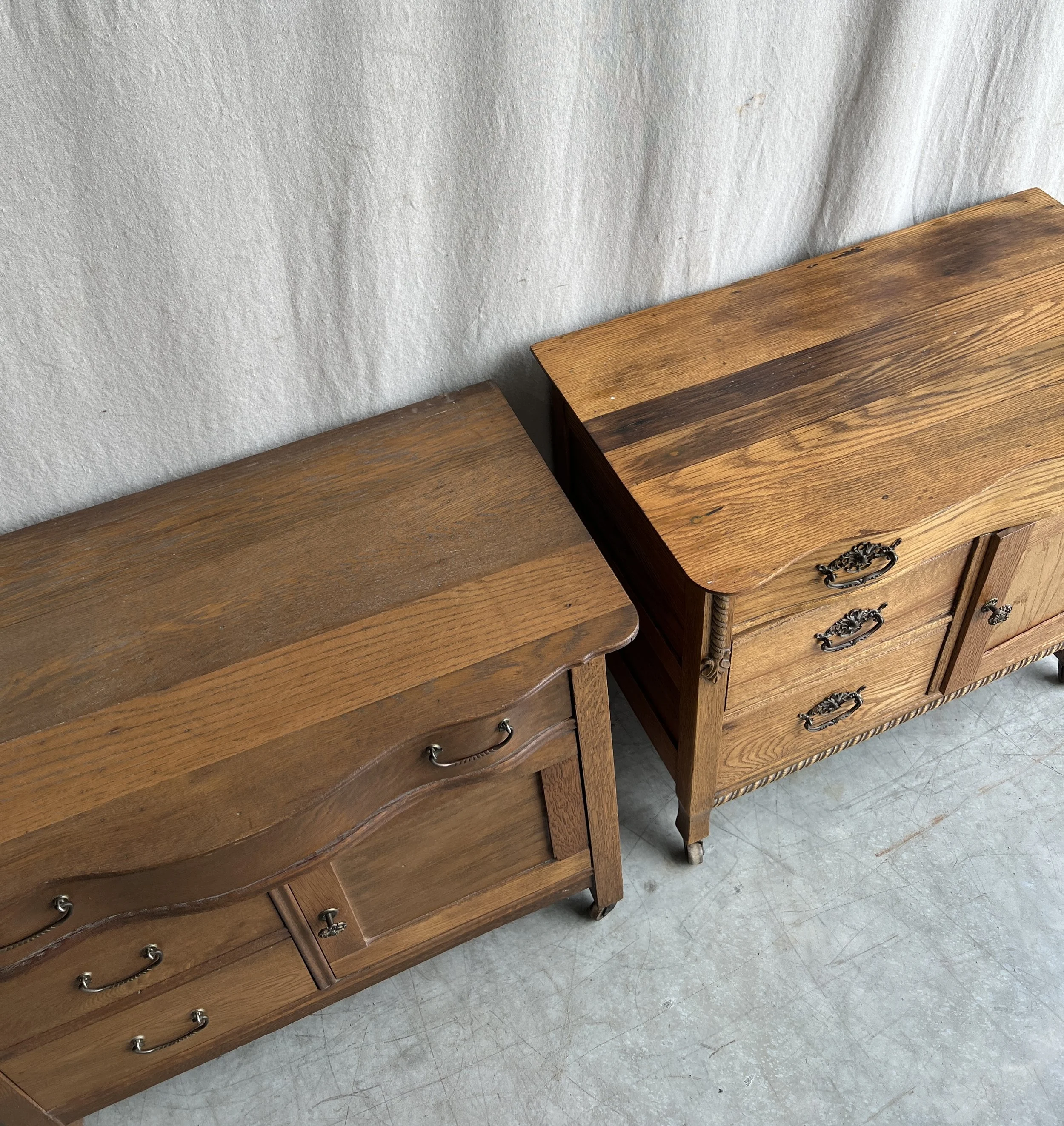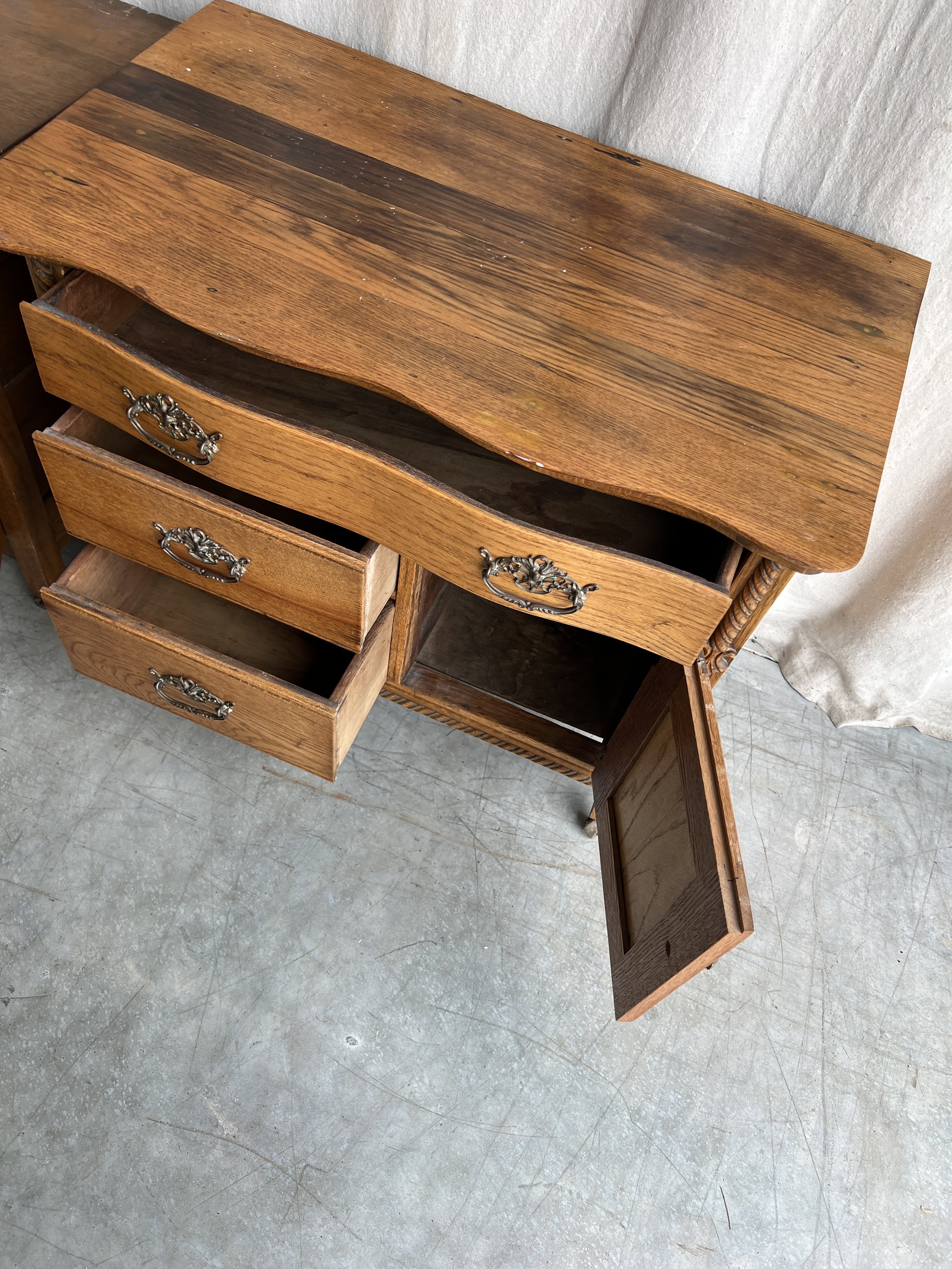 If you want to purchase as is, we can give it a clean up for an additional fee between $200-$300 depending on size of piece. Clean up means no sanding, stain over existing finish ( no painting), and seal in a flat top coat. Hardware can be painted or cleaned. Inside will be oiled with scented furniture salve also.