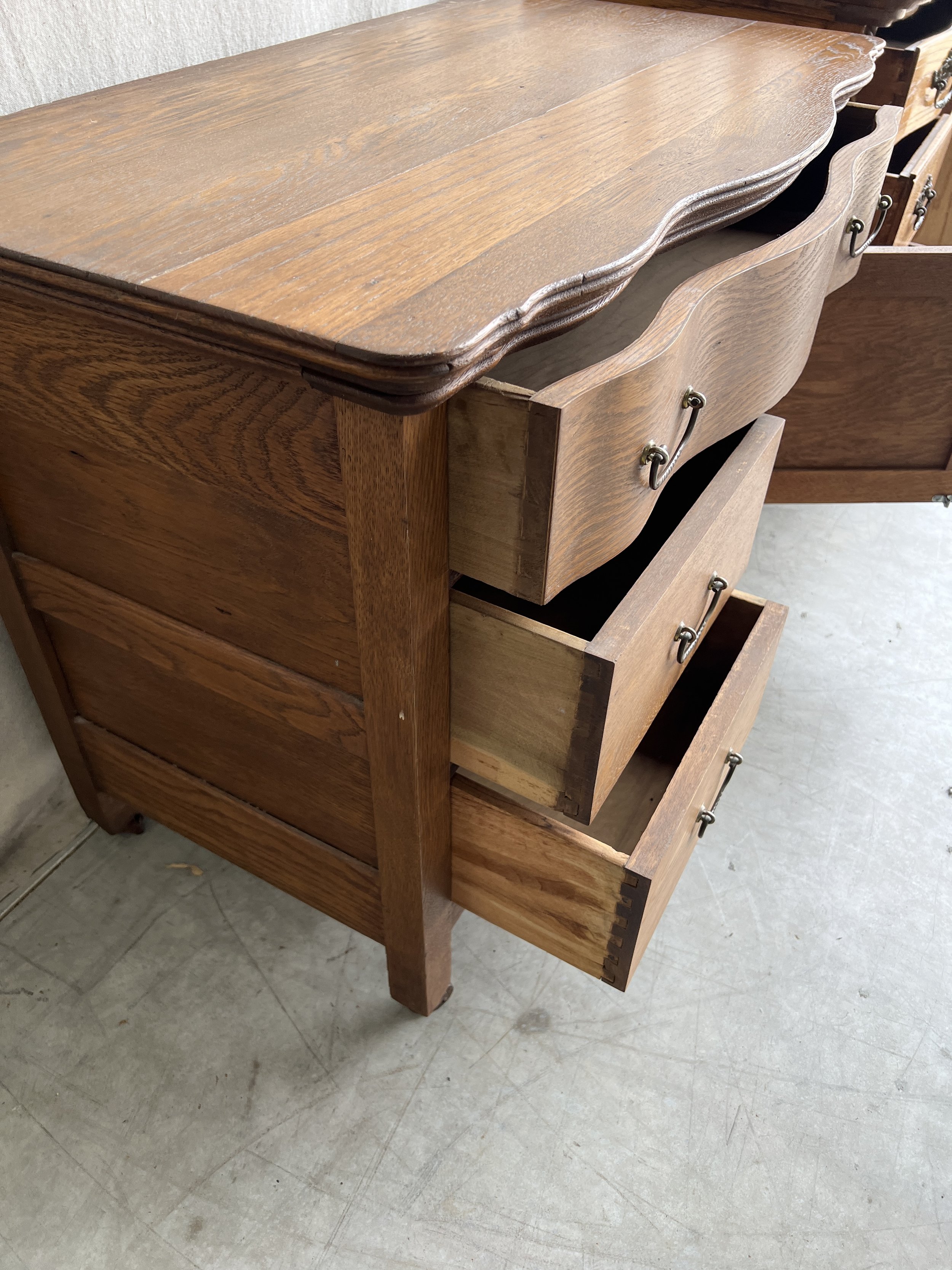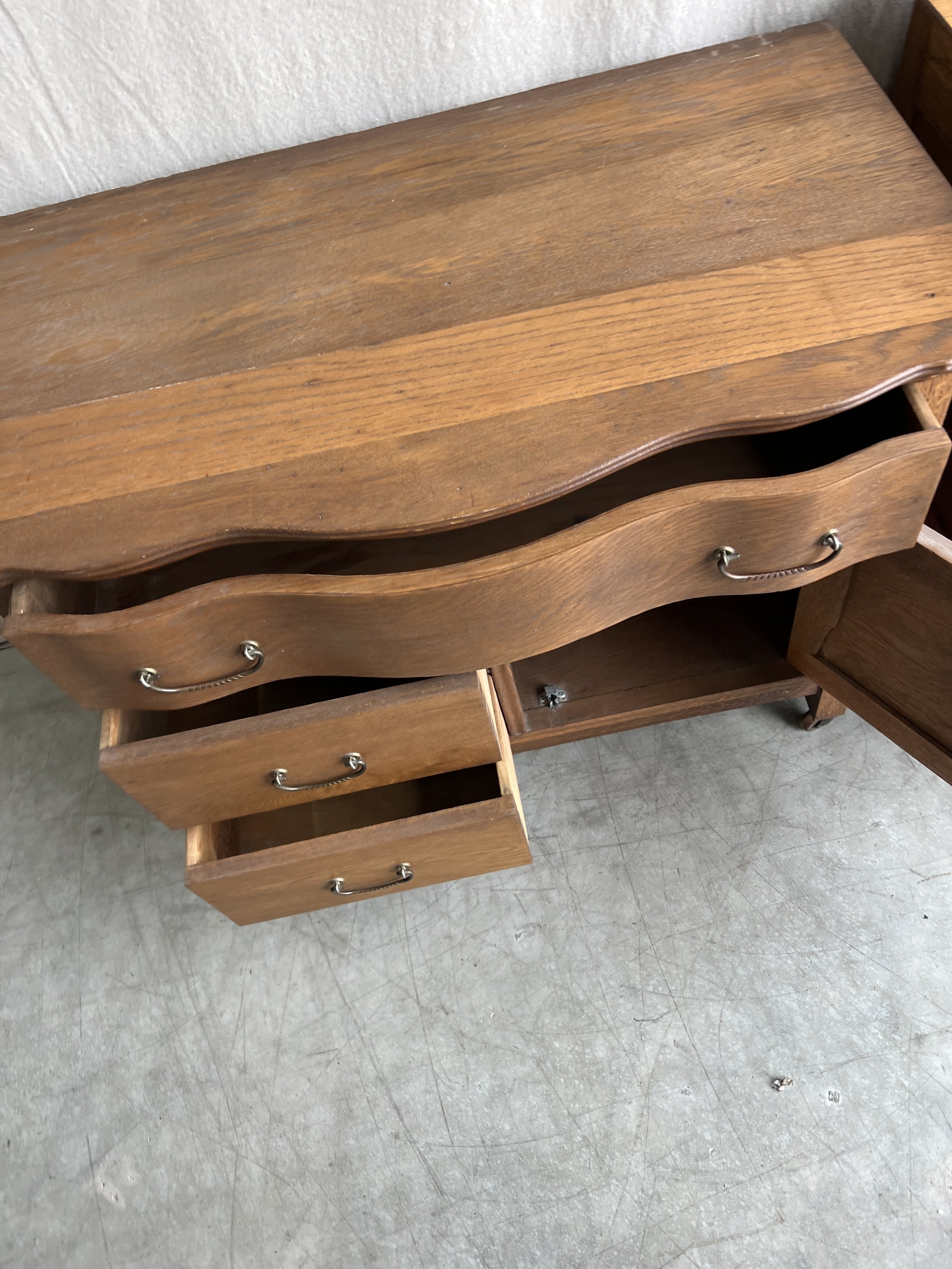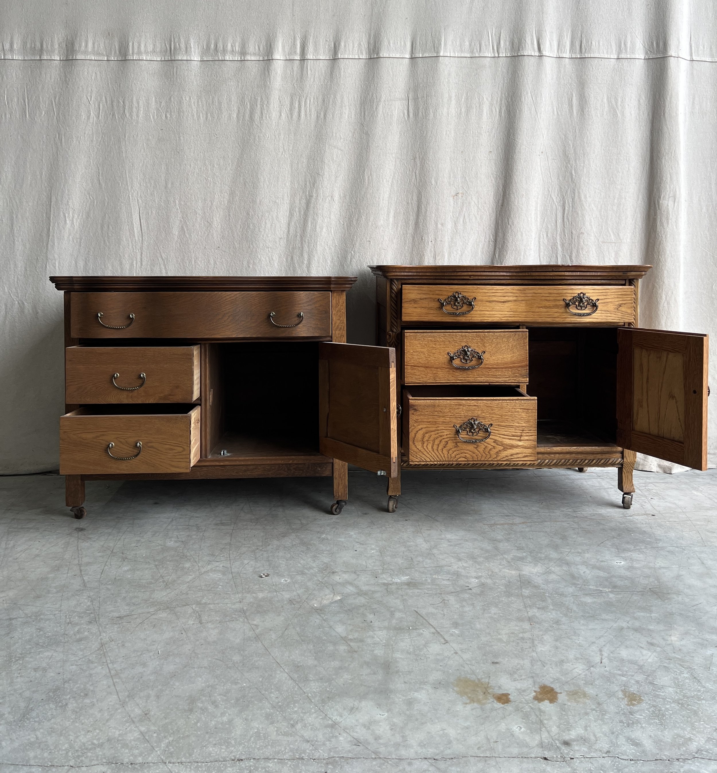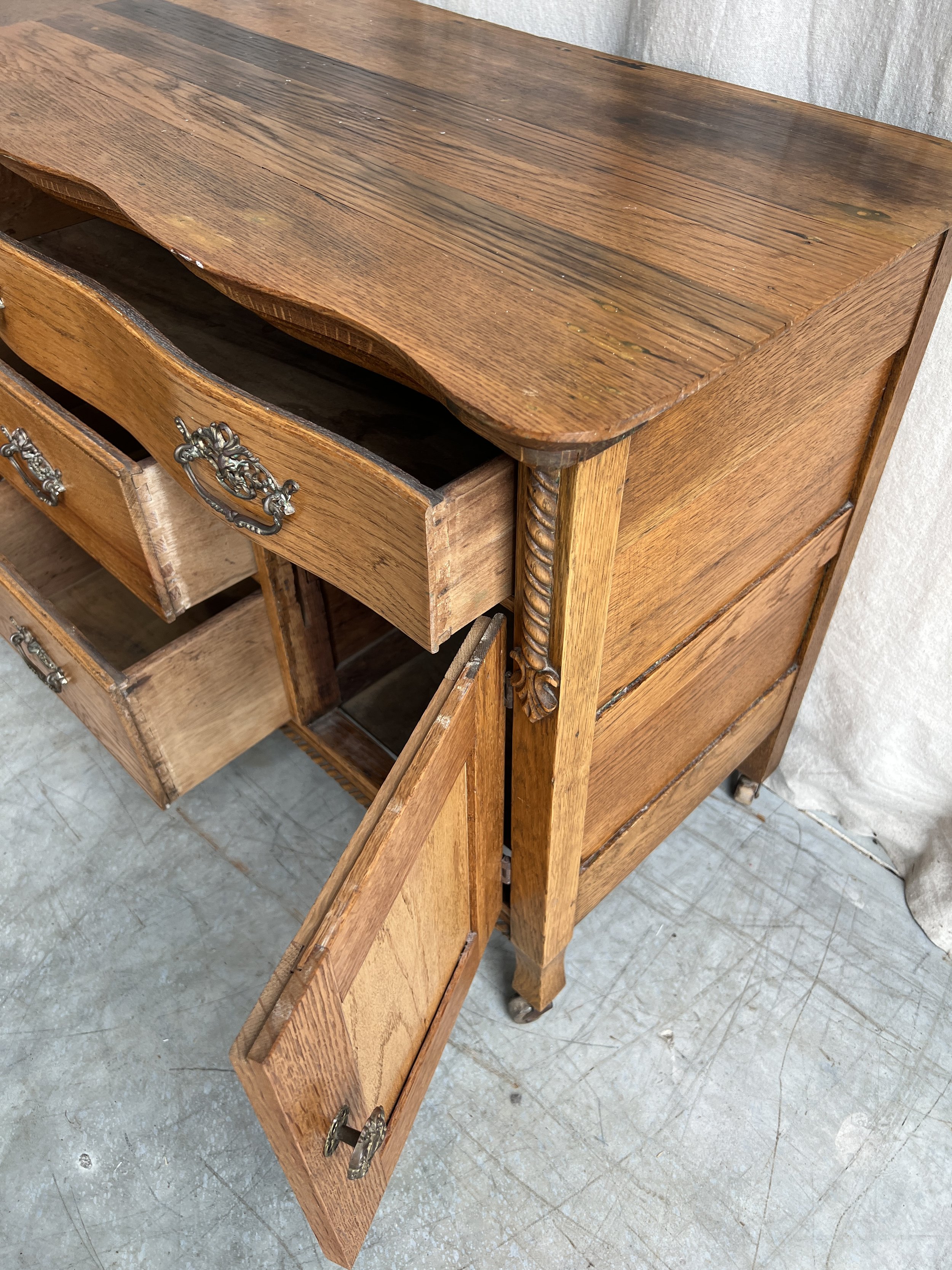 If you want to purchase as is, we can give it a clean up for an additional fee between $200-$300 depending on size of piece. Clean up means no sanding, stain over existing finish ( no painting), and seal in a flat top coat. Hardware can be painted or cleaned. Inside will be oiled with scented furniture salve also.